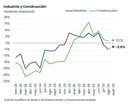 El anticipo del Estimador Mensual de Actividad Económica (EMAE) de Equilibra prevé un alza de 1,5% interanual. Sin embargo, en el noveno mes del año, el EMAE desestacionalizado "caería 1% mensual, luego del incipiente rebote registrado en agosto". De esta forma, la actividad quedaría 2% por debajo del nivel de febrero.