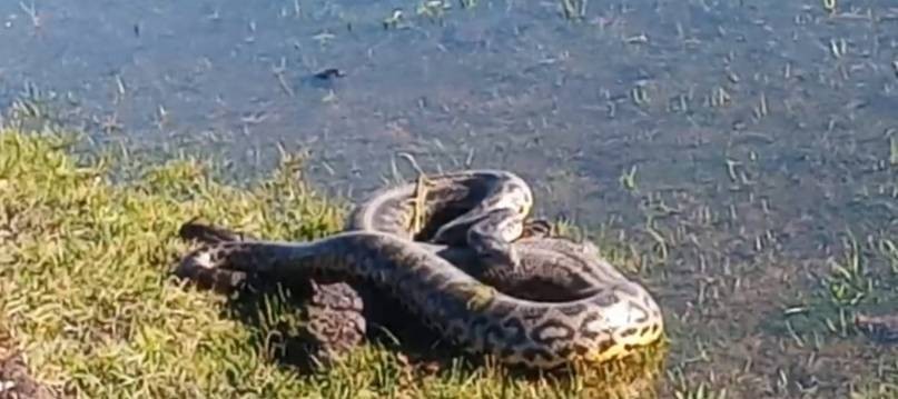 Una enorme curiyú apareció en un bañado en el interior de Corrientes
