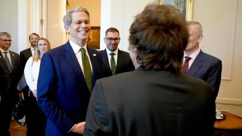 “Estamos trabajando en una línea de crédito de 20.000 millones de dólares que sería complementaria de nuestra línea de intercambio de divisas, con bancos privados y fondos soberanos, que creo que estaría más orientada al mercado de deuda”, detalló Scott Bessent ante la prensa en Washington.